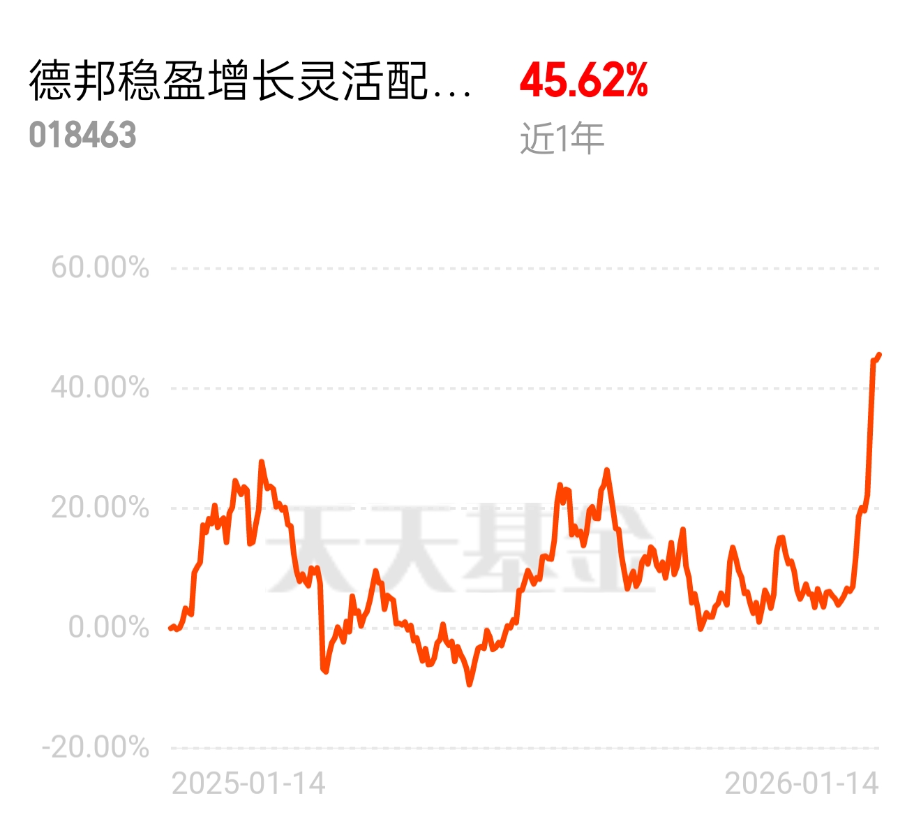 低空经济管控技术升级,运营效率提升,德邦稳盈增长灵活配置混合 C 近 1 年 45.62%。德邦已经限购 1W 了,快得让人没反应过来,没进场的会转战其他基金,它都稀释严重,其他同类不出意外会打折,不过行情跌了跌幅也会打折,买了的小伙伴别懊恼。$德邦稳盈增长灵活配置混合C$