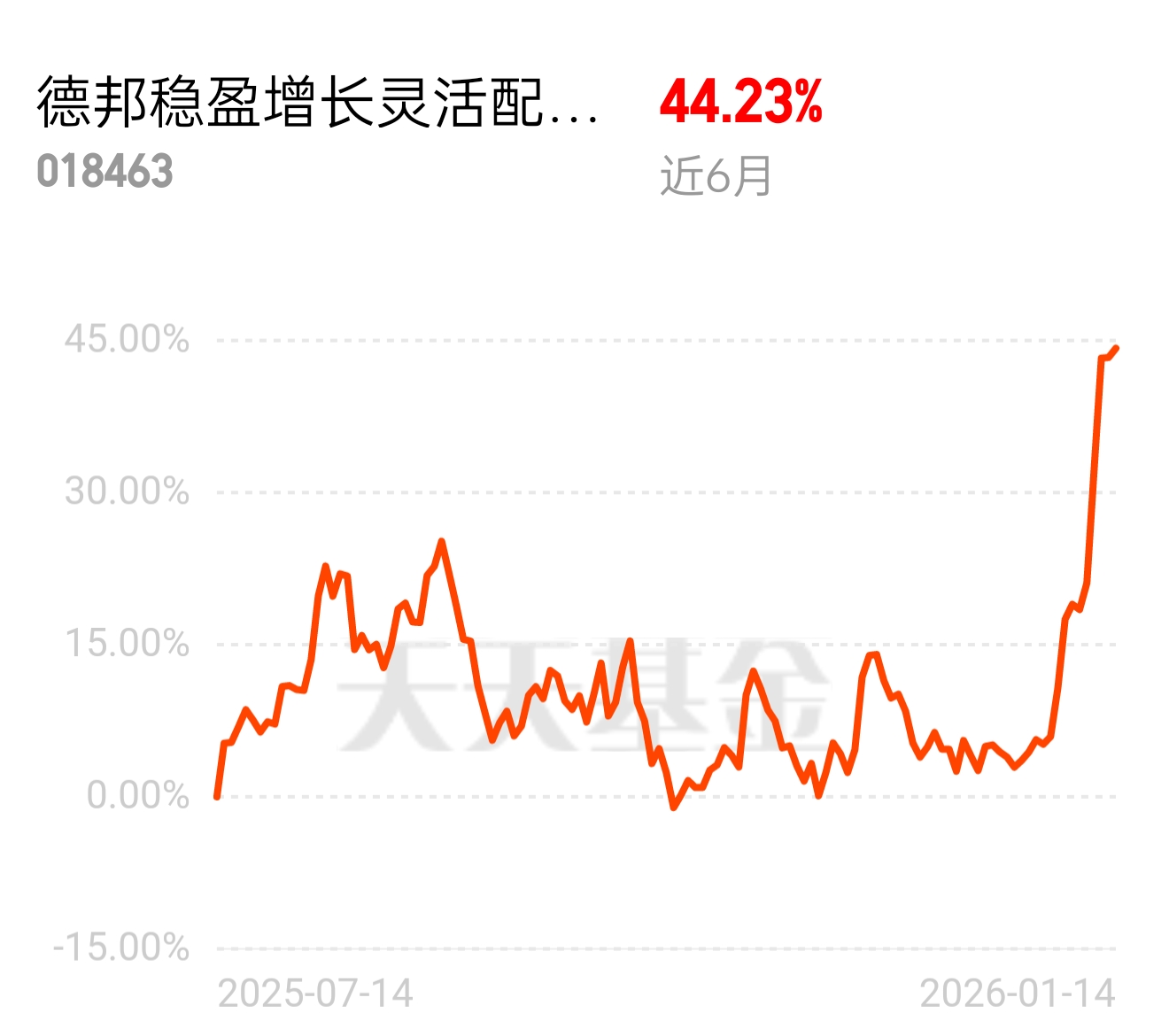 商业航天 IPO 热潮升温,多款可回收火箭 2026 年蓄势首飞,头部企业冲刺上市,德邦稳盈增长灵活配置混合 C 近 6 月 44.23%。能看到软件应用慢慢成了核心焦点,CPO、商业航天这些领域池子大资金多,随便流出一点到其他板块都影响深远,AI 赛道长期大方向向上,资金涌入是市场信心的体现,在车上的就稳住,行情才刚刚开始。$德邦稳盈增长灵活配置混合C$
