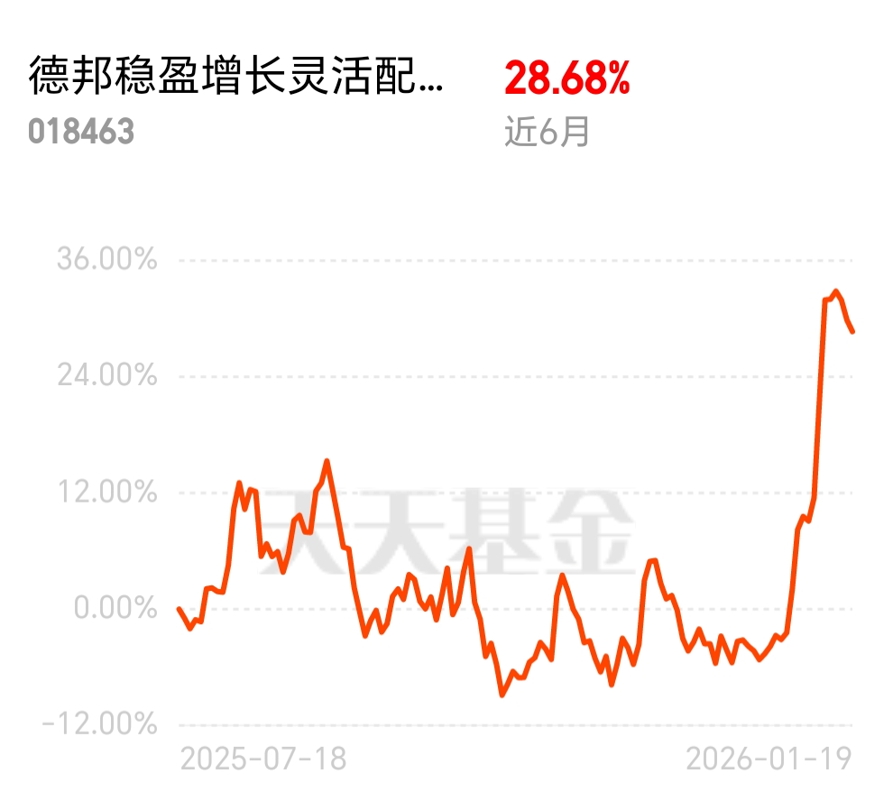 很多人买基金因频繁操作亏钱,选只稳的基金才能拿得住。$德邦稳盈增长灵活配置混合C$ 近 6 月收益 28.68%,稳到能拿住。今天市场有点小波动,它的表现很给力,还好跌的不多,控制在一个点以内,能接受,明天看你表现,拿得住的基金才能赚到钱。