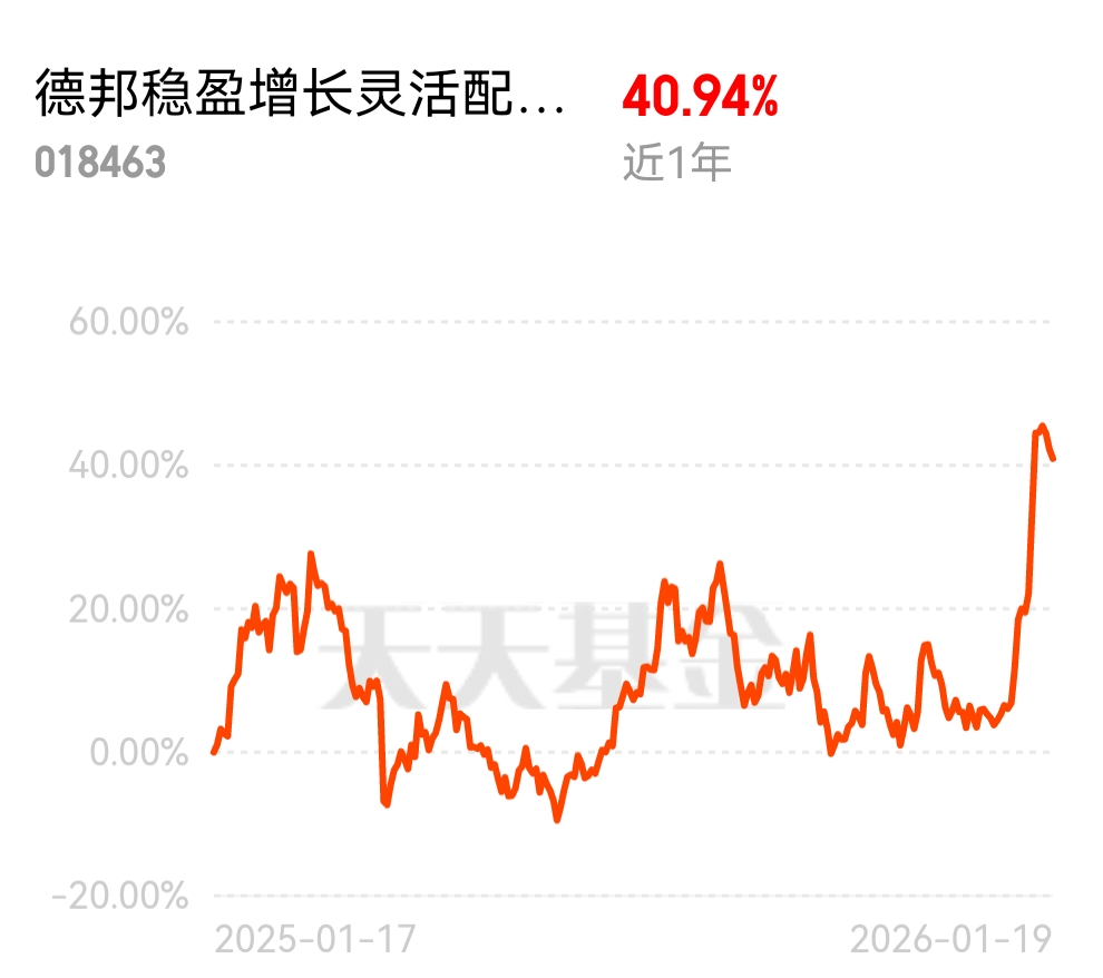 不少基金因筹码拥挤出现波动,而分散配置的基金更抗风险。德邦稳盈增长灵活配置混合 C 近 1 年收益 40.94%,配置分散抗风险。刚才看了眼账户,还好跌的不多,控制在一个点以内,能接受,明天看你表现,分散配置就是安心,不用怕单一赛道翻车。
