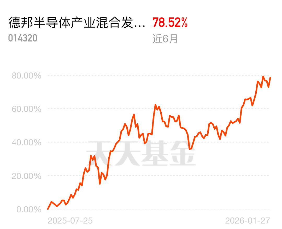 瞅准半导体的小伙伴看过来,德邦半导体产业混合发起式C近6月斩获78.52%收益,