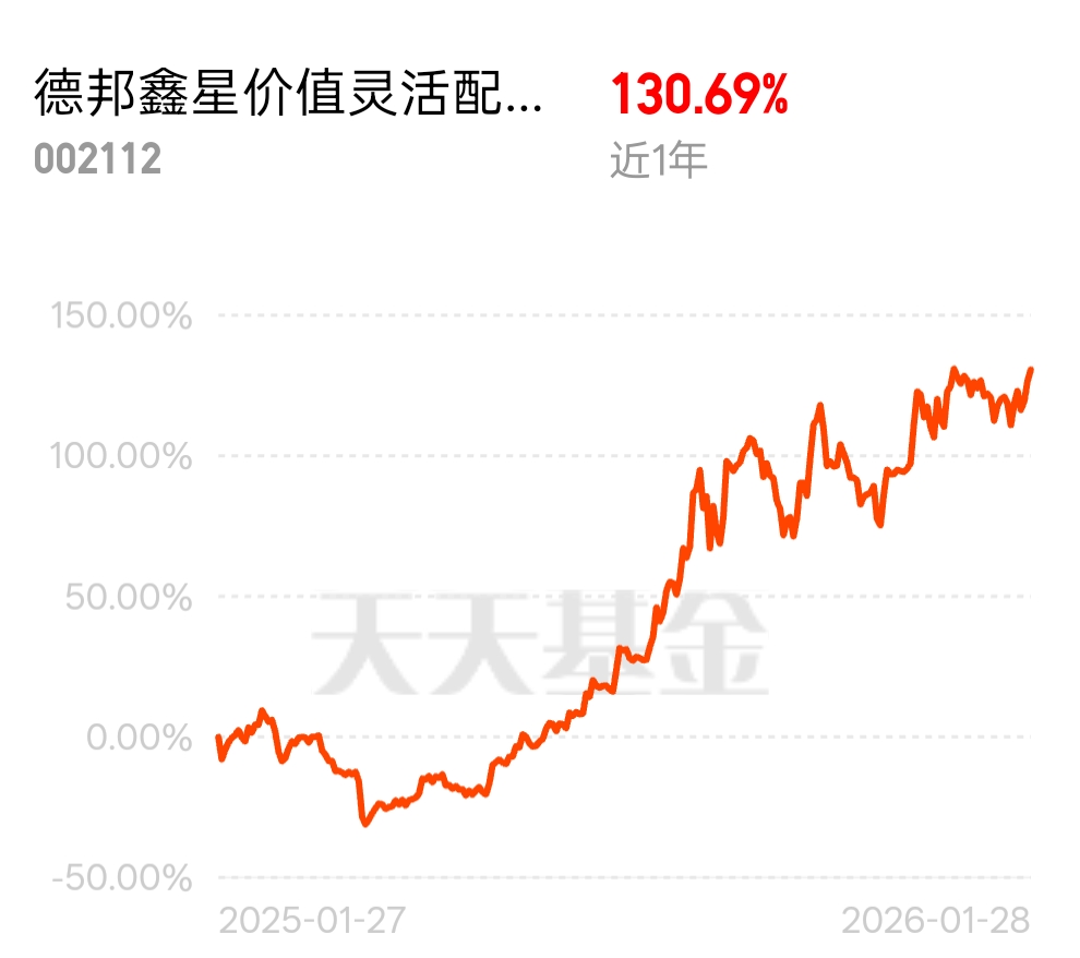 想抓优质基金收益的别错过,德邦鑫星价值灵活配置混合 C 的业绩太亮眼了,近 1 年收益直接冲到 130.69%,在市场里妥妥的优等生,布局的赛道景气度拉满,拿着它跟着吃肉超省心,入手就对了。