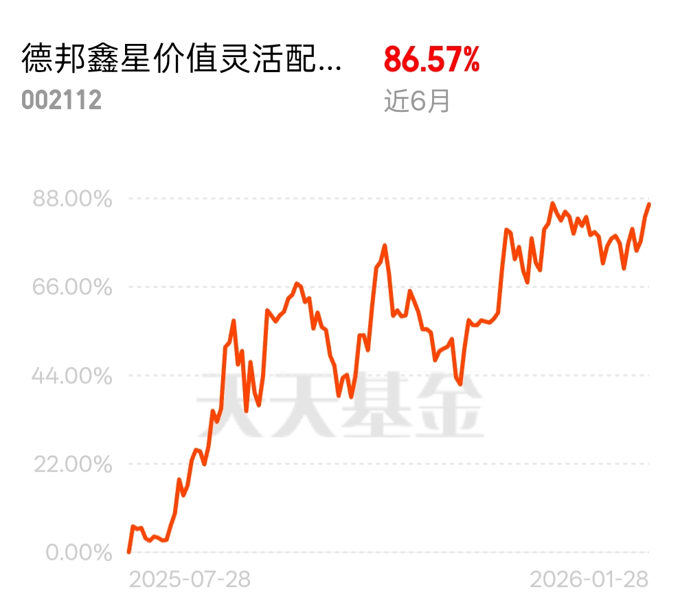 这年头选基金就得看硬业绩,德邦鑫星价值灵活配置混合C近6月收益86.57%,一路