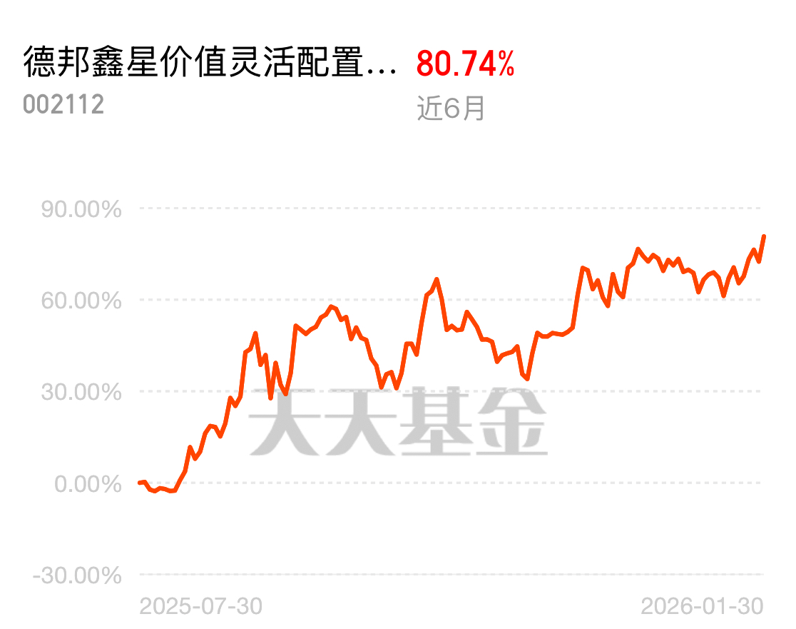 广告就广告吧,广告基也有实打实的好基金,德邦鑫星价值灵活配置混合 C 近 6 月涨了 80.74%,这只在 AI 应用里的表现其实真的还可以,作为持有人,实打实的收益比啥都重要。$德邦鑫星价值灵活配置混合C$