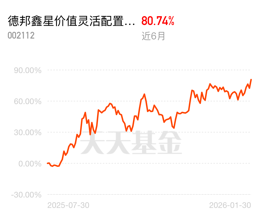 作为老持有人说句心里话,德邦鑫星价值灵活配置混合 C 近 6 月 80.74%,广告就广告吧,好基金看业绩说话,这只在 AI 应用里的表现真的没话说,继续持有不犹豫。$德邦鑫星价值灵活配置混合C$