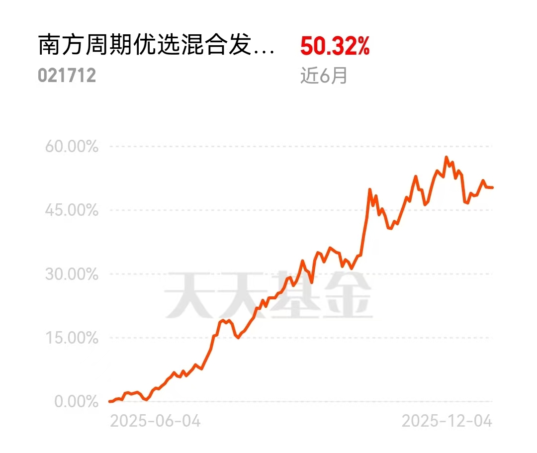 我刚买了点$南方周期优选混合发起C$(021712)这个基金,看今天这架势估计能涨不少。这基金近三个月涨了17%多,确实有点东西。最近有色那边铜啊铝啊涨得特别猛,主要是因为矿挖出来越来越难,但用到的地儿却越来越多,像新能源车、电网这些都要用。这基金就专门投这些方向,等于直接跟着这波行情走。对我们普通人来说,这种明牌的机会比瞎猜强多了,今天买点等着看效果。#12月你看好哪条投资主线?#