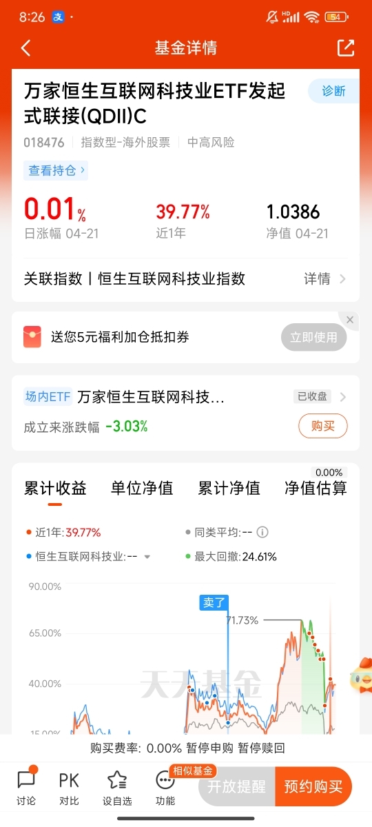 #“四月决断”如何操作?# #红利当投# $万家恒生互联网科技业ETF发起式联接(QDII)C$ #晒收益#