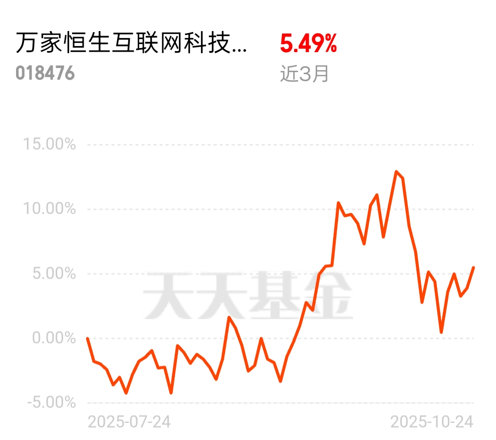 周五又上涨了一个多点,最近表现也是越来越好了呢$万家恒生互联网科技业ETF发起式