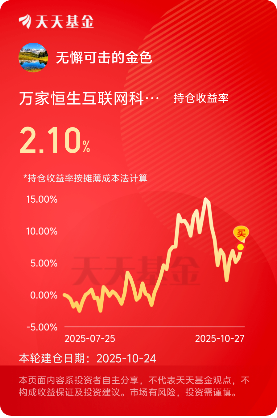 科技依然是主线更好的抓住就行。$万家恒生互联网科技业ETF发起式联接(QDII)C$ #晒收益#