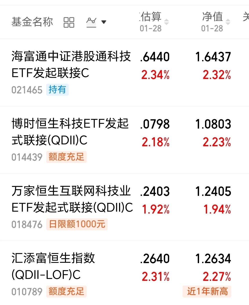 $万家恒生互联网科技业ETF发起式联接(QDII)C$ 今天上涨1.94%;