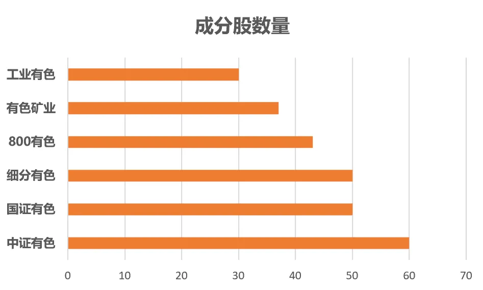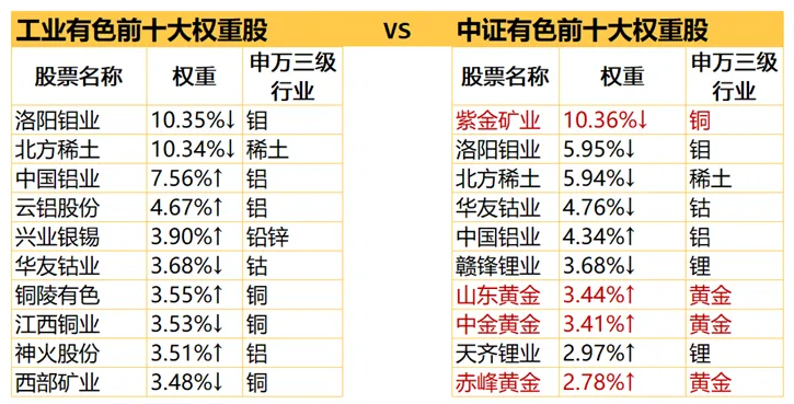 1⃣ 成分股数量:中证有色成分股最多(60只),分散度高,表现相对平稳一些;工业有色只有30只成分股,持仓相对集中,波动也更大。