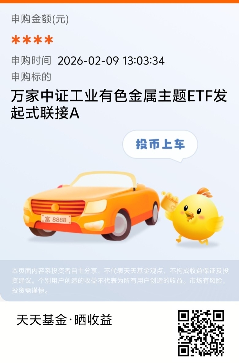 我是万家基金的老客户了,对他们家的产品比较信任。我仔细看了下资料。$万家中证工业有色金属主题ETF发起式联接A$ 赛道是公认的好赛道,经理投资思路很清晰,深耕制造业,风格稳定。这种“实力平台+潜力赛道+稳健型选手”的组合,我觉得风险收益比可能不错。新基金的浮动费率也是个加分项。我决定用一部分资金认购,一方面是支持,另一方面也是用真金白银验证一下自己对这家公司和新产品的判断。