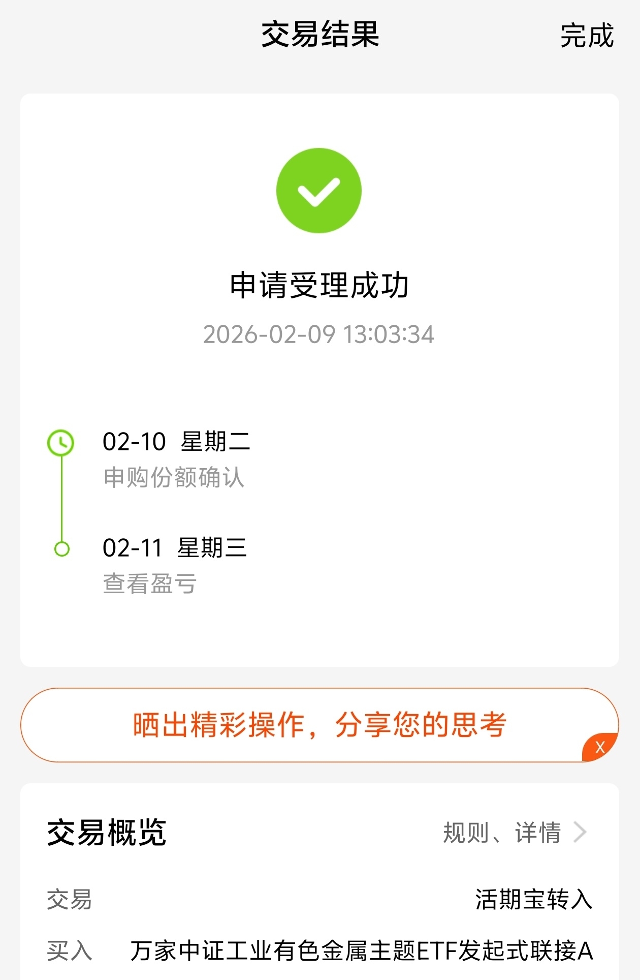 我买基金,很在意“知行合一”。$万家中证工业有色金属主题ETF发起式联接A$从产