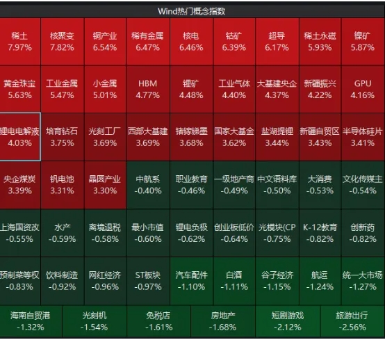 10月9日节后市场迎开门红,沪指突破3900点创十年新高,板块方面,稀土、核聚变、有色铜强势领涨,其中,稀土大涨7.97%,铜产业大涨6.54%。