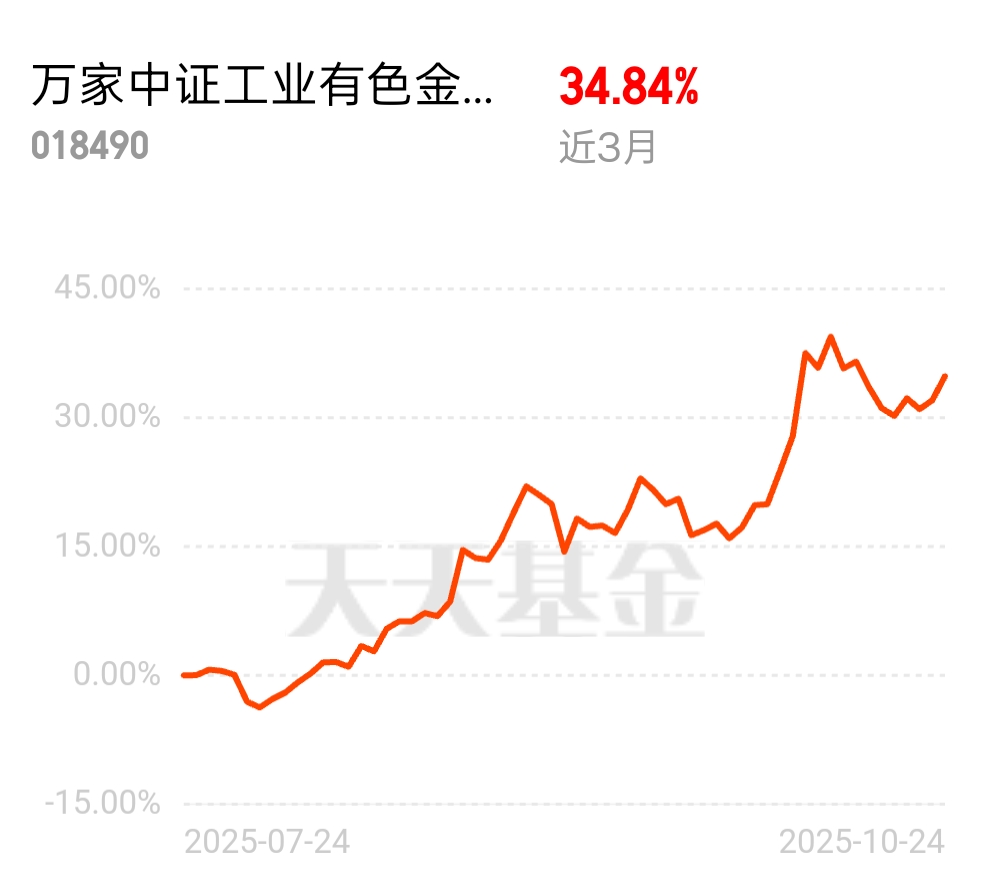 周五又上涨了2个多点,最近有色金属表现还是挺不错的呢$万家中证工业有色金属主题E