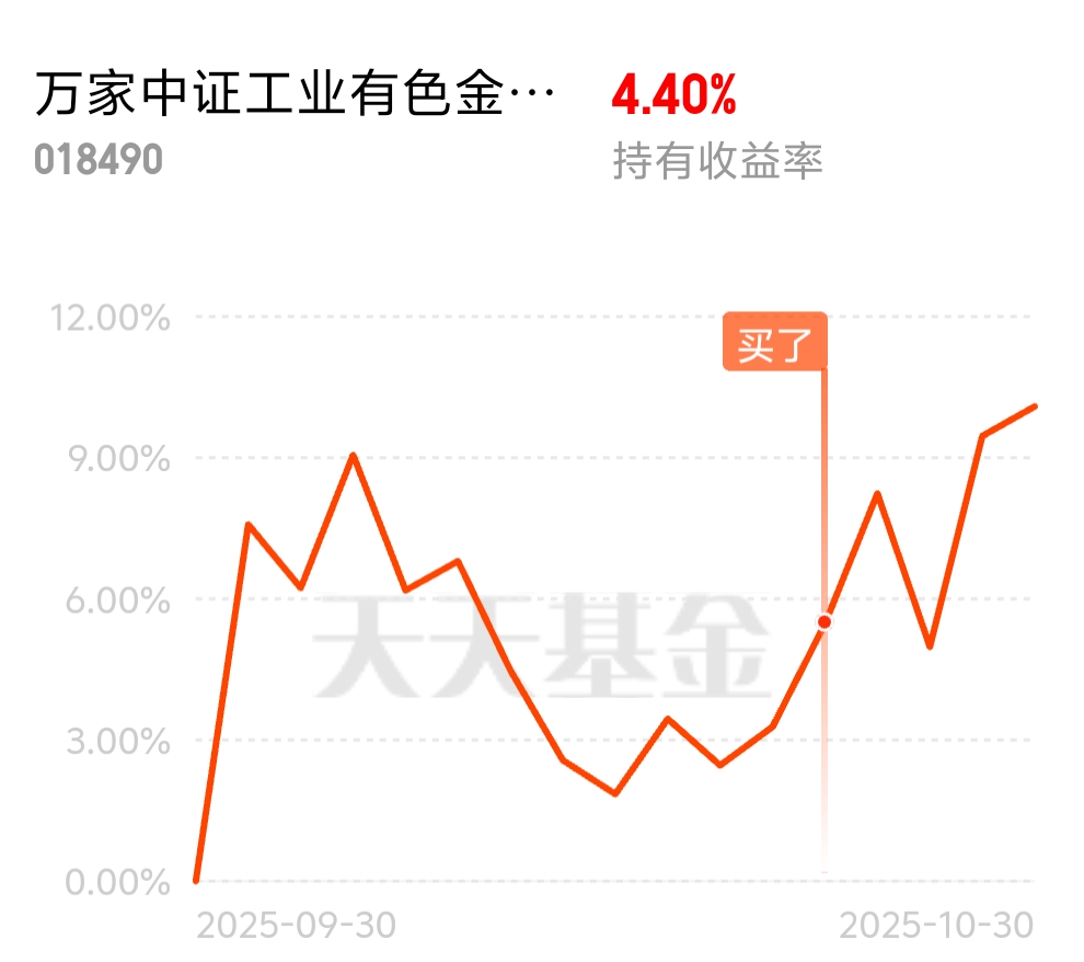 $万家中证工业有色金属主题ETF发起式联接C$今天有色回调再来点,弹性不错,目前