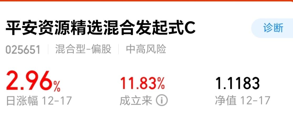 今日大盘全面反弹上涨,三大指数集体收涨。 今天有色板块表现出色,我关注的平安资源精选混合C今天晚上净值更新涨了2.96%同类中表现出色,成立以来涨幅11.83%,这是新起之秀啊继续看好它的上涨空间