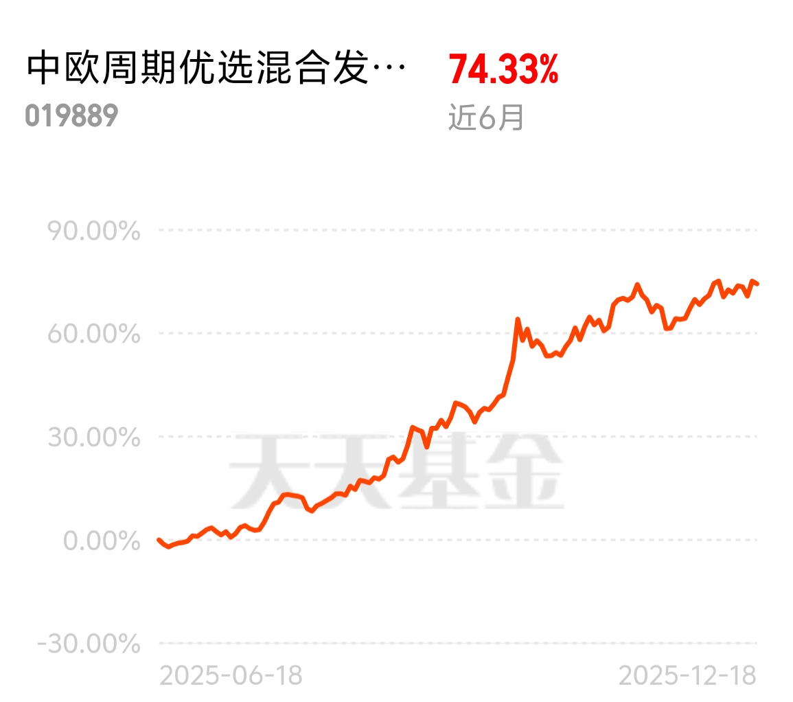 美联储 12 月降息落地,资源类资产迎来估值修复窗口!中欧周期优选混合发起 C 近 6 个月 74.33%,在周期资源类里数一数二,“资源 + 制造” 双主线,还能吃新型工业化的红利。$中欧周期优选混合发起C$