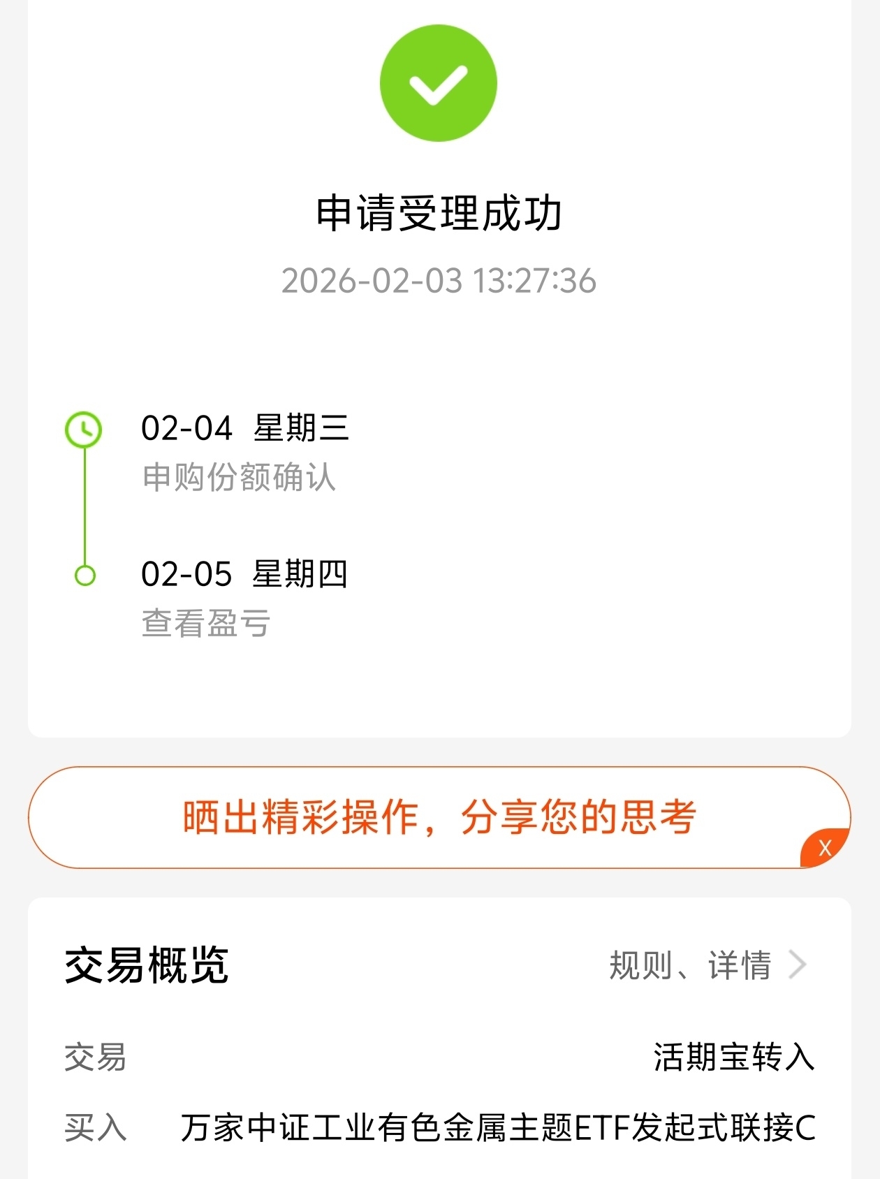 近期政策利好不断,$万家中证工业有色金属主题ETF发起式联接C$ 这支基金抓机会能力强,业绩亮眼,同类排名靠前,我看好它吃透行业红利,未来空间还很大,是机会不等人,今天继续入手了,相信经理管理能力,看着业绩很出色,各阶段都很优秀,今天先建仓。分批进场