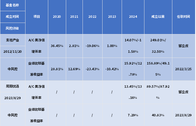邹立虎在管同类产品历史业绩: