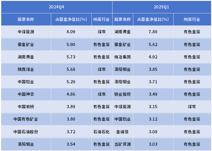 翻看周期优选的过往持仓,截至今年二季报,产品自成立以来的7个报告期,行业配置均集中在有色、煤炭、钢铁和化工行业,较早便将有色金属配置为第一大重仓行业。