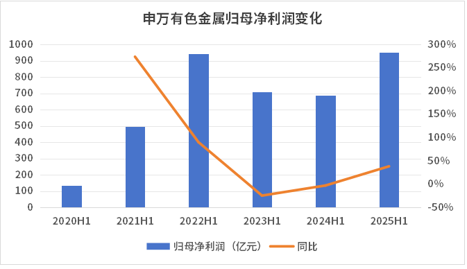 受益于金属价格的上涨,今年上半年,申万有色金属行业实现归母净利润956.36亿元,较2024年同期大幅增长38.27%,呈现出较高的景气度。