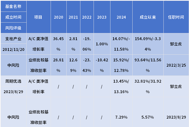 邹立虎在管同类产品历史业绩: