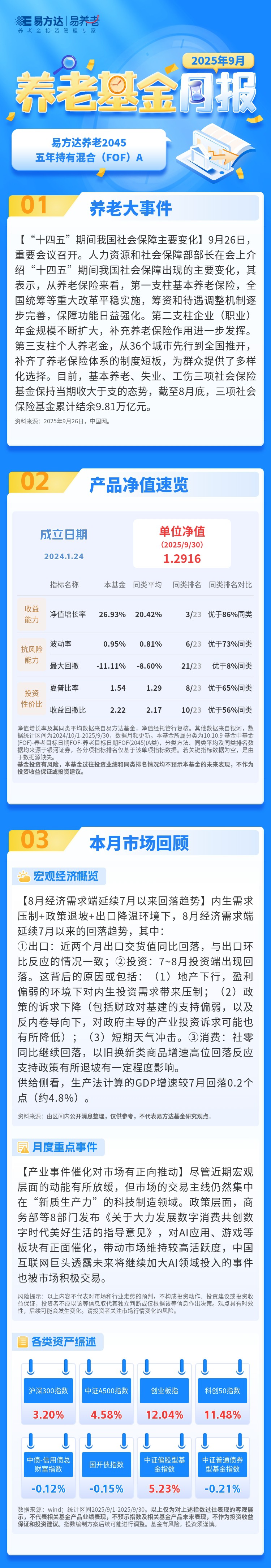 养老基金月报(202509):易方达养老2045五年持有混合(FOF)A