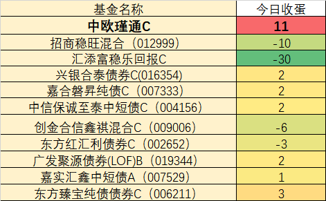 今日债市表现亮眼,在A股波动中,固收加产品的值得关注。 中欧瑾通C 收11个蛋,中信保诚至泰中短债C(004156)收了2个蛋,东方臻宝纯债债券C(006211)收了3个蛋.谁说稳健与收益不可兼得?中欧瑾通C(002010)用近三月2.25%反弹收益与连涨新高证明:低波动策略也能跑出漂亮收益曲线。#暖阳创作计划#