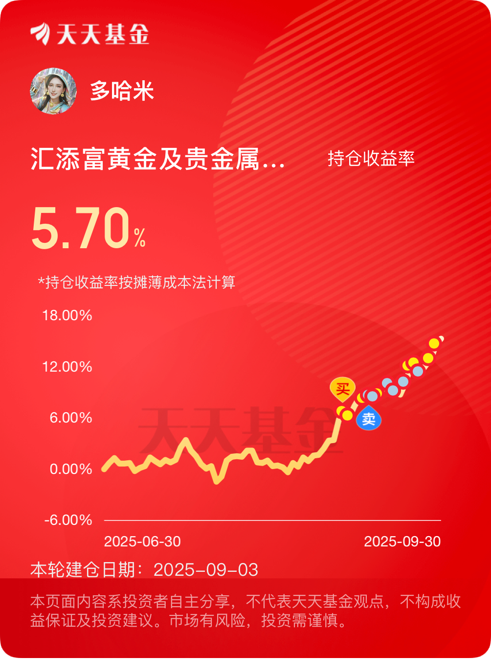 $汇添富黄金及贵金属(QDII-LOF-FOF)C[018543]$ #晒收益#