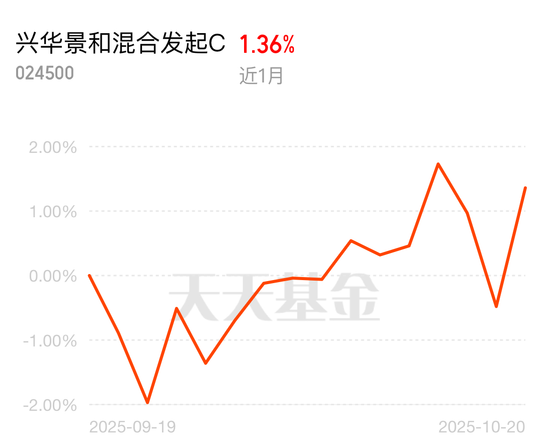 昨天$兴华景和混合发起C$的净值,居然涨了1.86%,在同类里跑得特别快!它一直