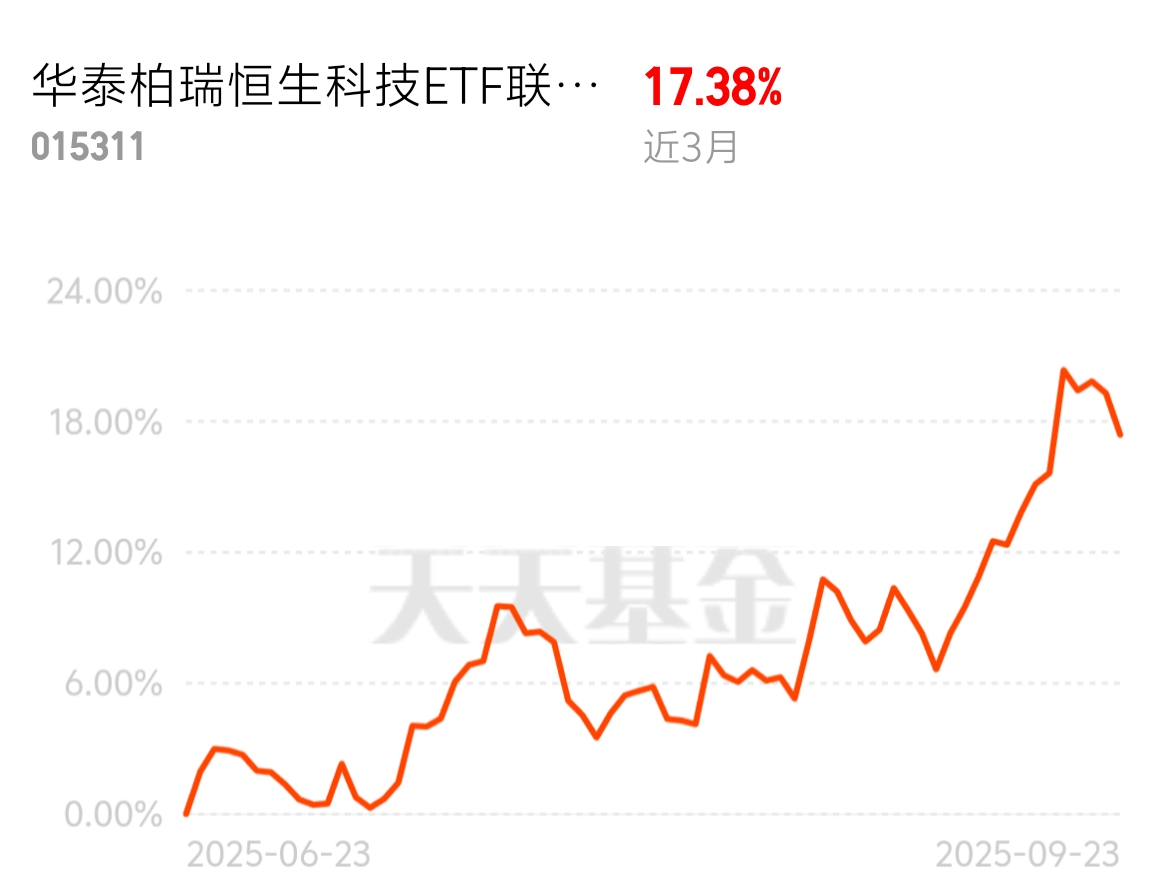 看到万亿南下资金和外资都在买港股,我就放心了。$华泰柏瑞恒生科技ETF联接(QDII)C$ 近三个月涨17.38%,跟着大资金走总不会错。
