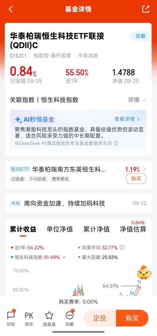 1. 今天恒生科技算是稳住了,总算没白等这波调整后的反弹。盘面上AI应用、机器人这些热门题材都在涨,25只成分股飘红,看得出来资金还是认科技这条线的。最关键的是南向资金还在加仓,今天又净买了110多亿港元,真金白银砸进去,说明对这板块有信心。不想自己选股盯盘的话,华泰柏瑞挺靠谱,昨天一天就涨了2.34%,近一个月收益更是飙到11.36%,跟行情跟得特别紧 。不过得提醒下,这是中高风险的,行情震荡的时候也可能跌,得根据自己情况来。#9月游戏版号发放 景气度或超预期#