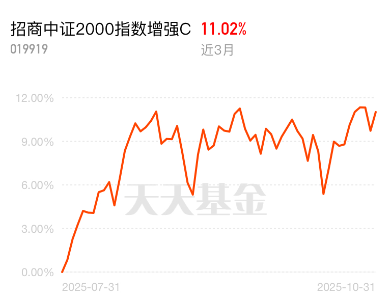 市场最近的表现中,小微盘股特别抢眼,相比大盘指数反弹更有力,抗跌性也更突出。招商中证2000指数增强C近3个月涨11.02%,值得多关注。$招商中证2000指数增强C$