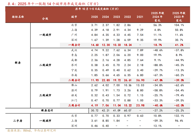 5、从假期经济数据来看,居民消费活力有所恢复,全国跨区域人员流动量日均达3.1亿人次,同比增长5.2%,创近五年新高。与之形成对比的是房地产市场的持续低迷,成交量降至近五年低位。(数据来源:Wind)