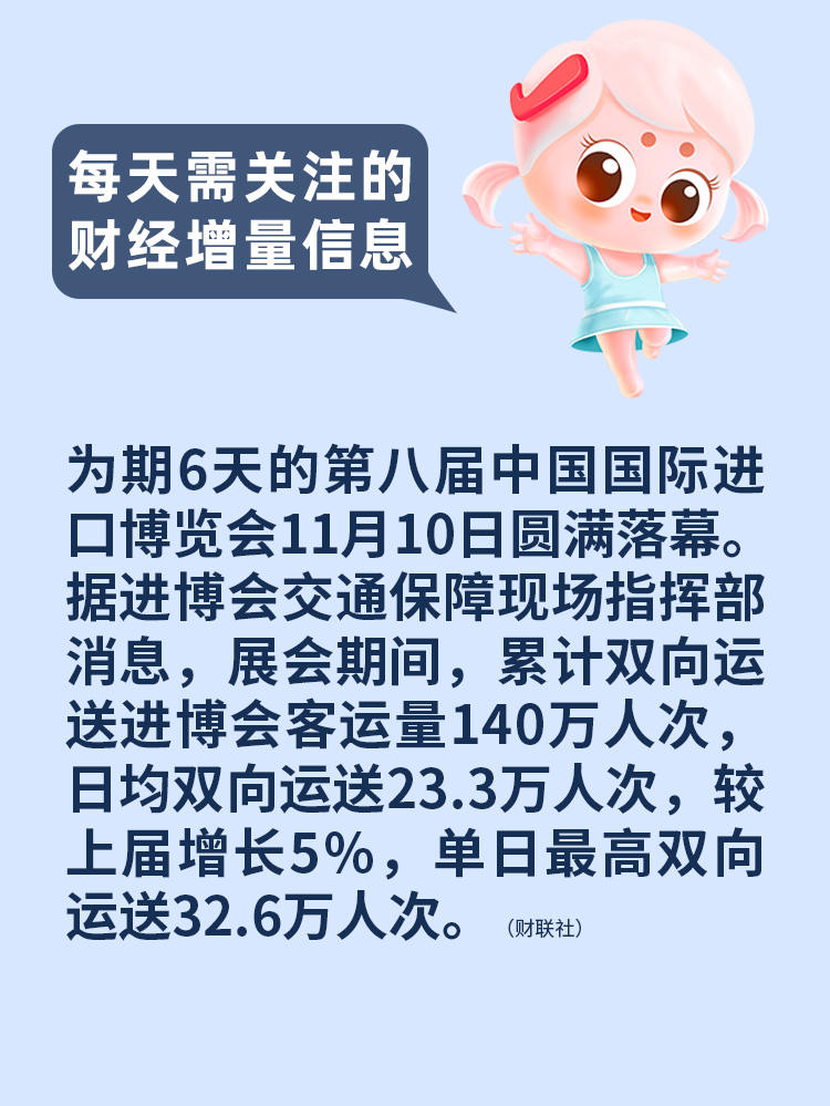 【每天需关注的财经增量信息】第八届中国国际进口博览会11月10日圆满落幕。