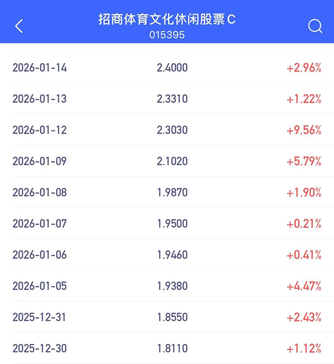 AI应用在前期确实冲得有点高,但随着回调,这个板块的机会又重新浮现了!招商体育文化休闲股票C,紧跟行业发展趋势,特别是在体育、文化和休闲领域的独特布局,让它的成长性和确定性更强。经过调整后,市场情绪逐渐回暖,春节前这个时间窗口看好它再度上攻!如果你看好长期增长,正是布局的好时机,赶紧把握这波机会。