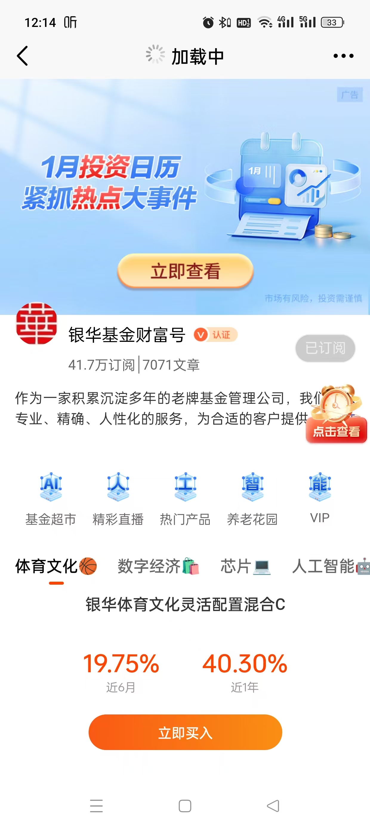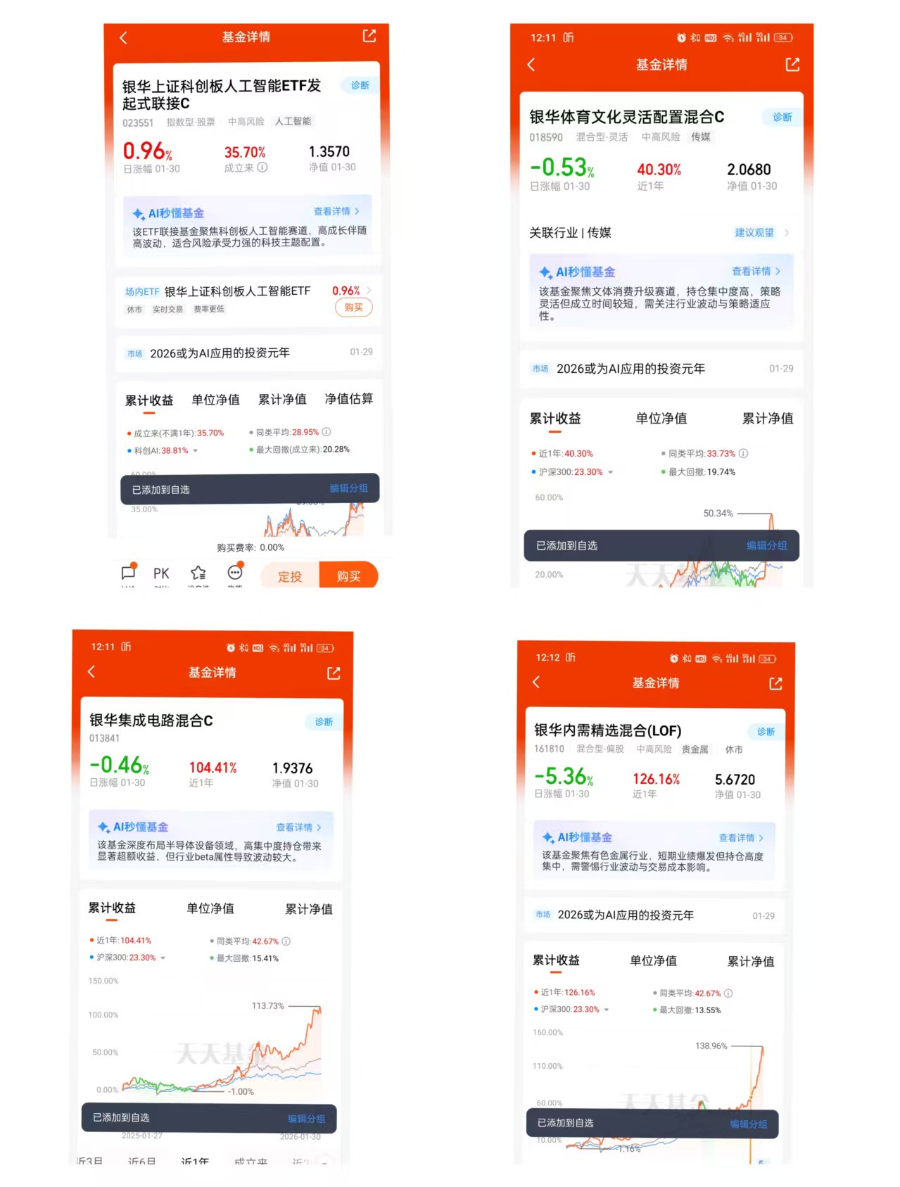 顺着这个逻辑,与其在恐慌中割肉,不如趁回调考虑布局。但问题是,AI应用赛道技术迭代快,个股分化严重,像今天这种行情里,要是选错了股票,跌个七八个点跟玩似的,普通投资者根本没有能力去甄别哪些是真有订单的真龙头,哪些是纯炒概念的假把式。这时候,通过专业基金来配置就成了更稳妥的选择,$银华体育文化灵活配置混合C(OTCFUND|018590)$是一只值得关注的工具。