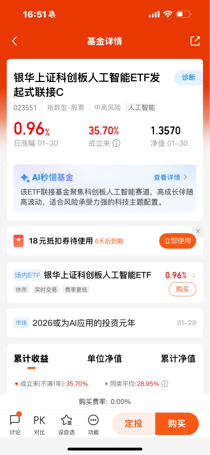 管理人实力:基金由银华基金量化投资部谭跃峰领衔管理,团队拥有丰富的指数产品管理经验,在指数跟踪误差控制、成分股调整优化、资金运作效率等方面表现优异,对科创板人工智能赛道的指数编制与成分股价值有深度理解,管理的指数相关产品流动性与跟踪效果俱佳。