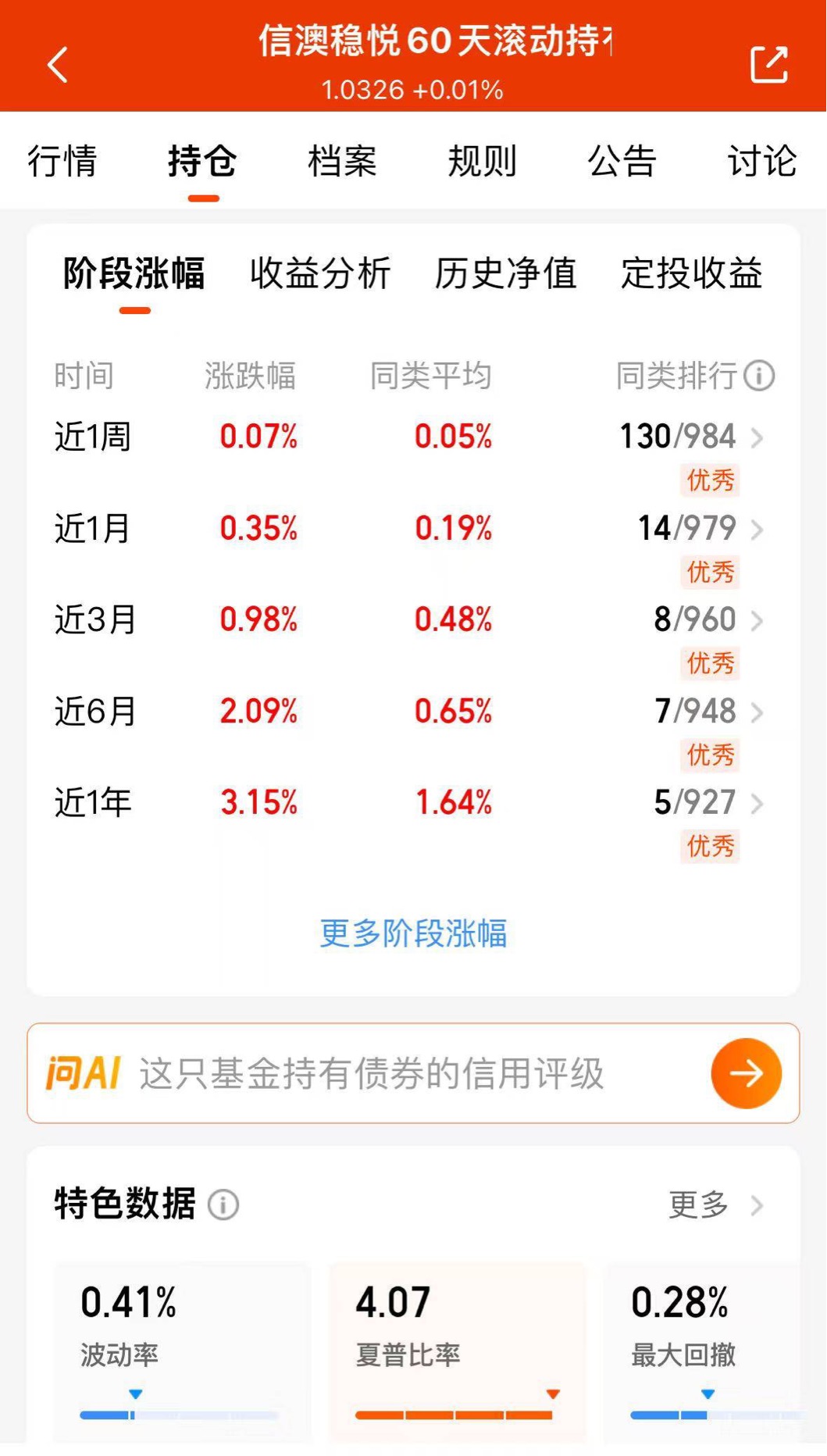 每天打开账户都有蛋收$信澳稳悦60天滚动持有债券C$近期走势太稳了,一个月35个