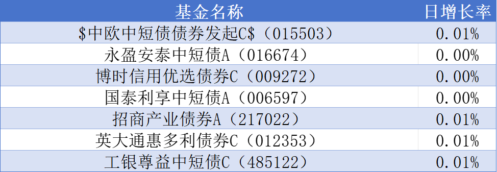股市最终收红让人欣慰,债市表现虽然一般但也没拖后腿,整体投资心情比较平稳。今日收蛋情况不错,$中欧中短债债券发起C$(015503)收了1个蛋,国泰利享中短债A(006597)收了0蛋,工银尊益中短债C(485122)收了1个蛋。中欧中短债能持续带来正收益,证明其管理团队在机会把握上确实有一手。#大消费板块逆市拉升!行情能否持续?#