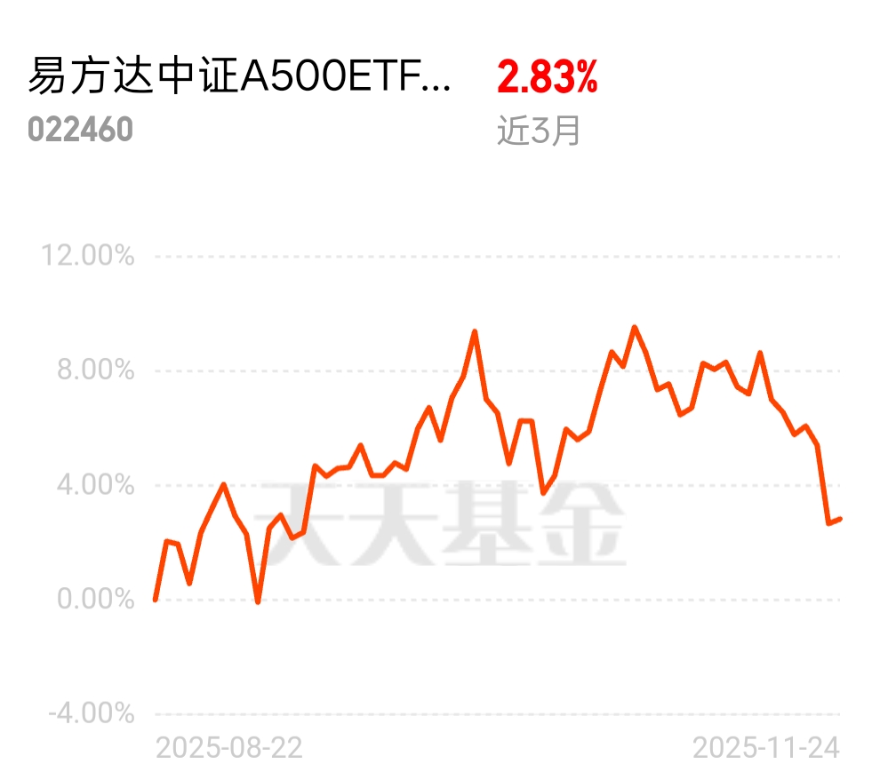 当前市场震荡格局下,抗跌能力强的产品更受欢迎,单一赛道基金风险太高扛不住波动。我一直定投易方达中证A500ETF联接C,近3个月涨2.83%,宽基分散配置抗跌,普通人这样投资更安心。