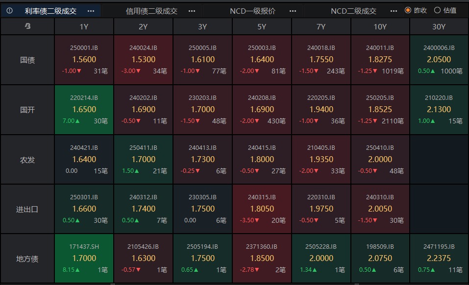 截至目前利率债大部分已经翻红了,7-10年久期目前都是收蛋的,就是超长期还没涨,不过离收盘还有半个小时,盘后也有机会继续拉升,看着信用债今天大涨,本以为想着下周利率债也该涨了,没想到这么快就拉起来了。