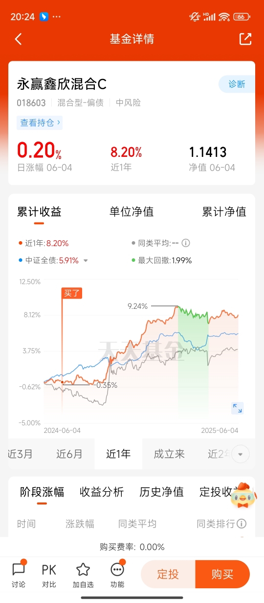#BD交易狂飙!中国创新药席卷全球# 债市里最亮眼的仔就数固收债基。永赢固收家族表现令人心动。$永赢鑫欣混合C$ 今晚来了20颗大蛋。近一周39颗蛋。近一年经历调整后也有820颗蛋。稳健增益稳赚的。有股有债,攻守兼备,既能抵御风险,又有保底增益,市场中固收债业绩好的基金成了抢手货。鑫欣加油冲!!!
