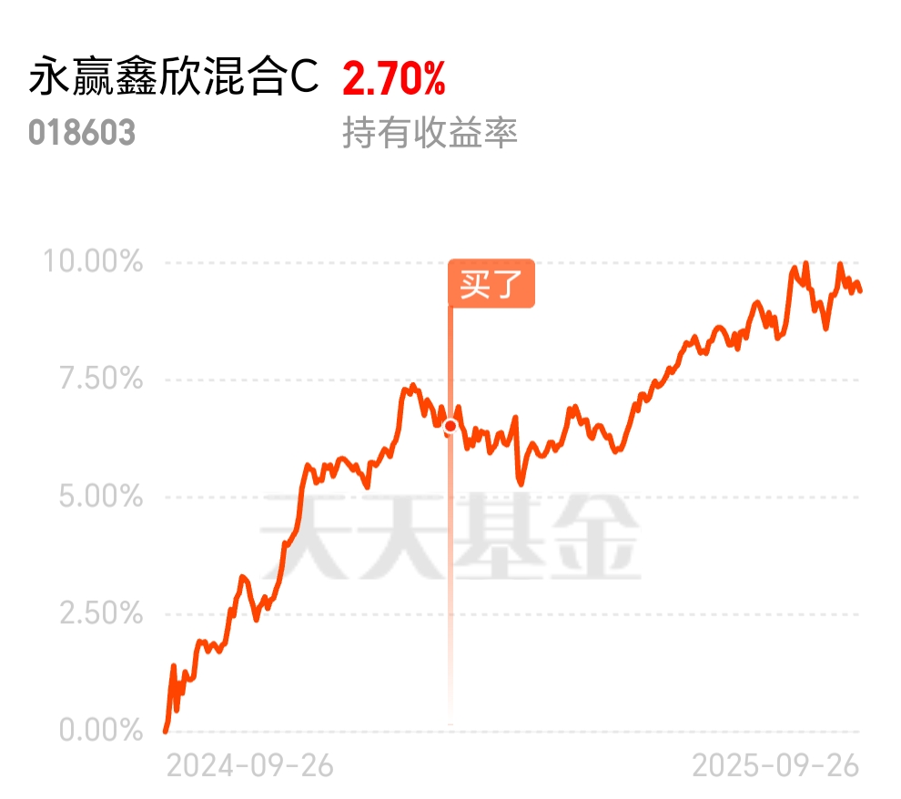 $永赢鑫欣混合C$配置还可以,长期收益也没的说,继续跟一波看看