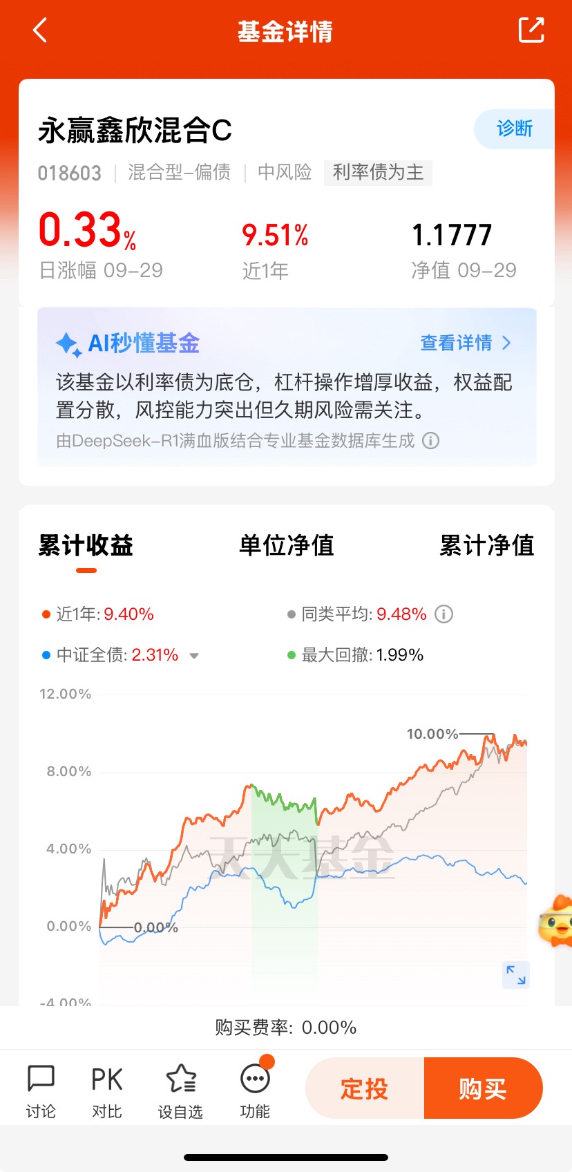 #牛市旗手回归?券商板块异动拉升# 在纯债市场小幅震荡、权益市场阶段性波动的环境下,混债通过灵活配置股债比例,既能捕捉权益市场的部分机会,又能依靠债券资产稳定净值,起到对冲风险的作用。$永赢鑫欣混合C$ 今天收33个大蛋,近三个月收186个蛋,近六个月收340个蛋,近一年收951个蛋,长期收蛋能力不错。混债对于风险偏好较低但又希望获取一定超额收益的投资者,是介于纯债和纯权益产品之间的理想选择,尤其适合追求稳健增值的长期投资者。