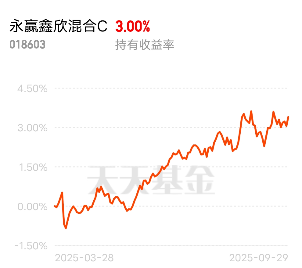 $永赢鑫欣混合C$持有固收+就不错,攻守兼备呀,收益慢慢积攒吧