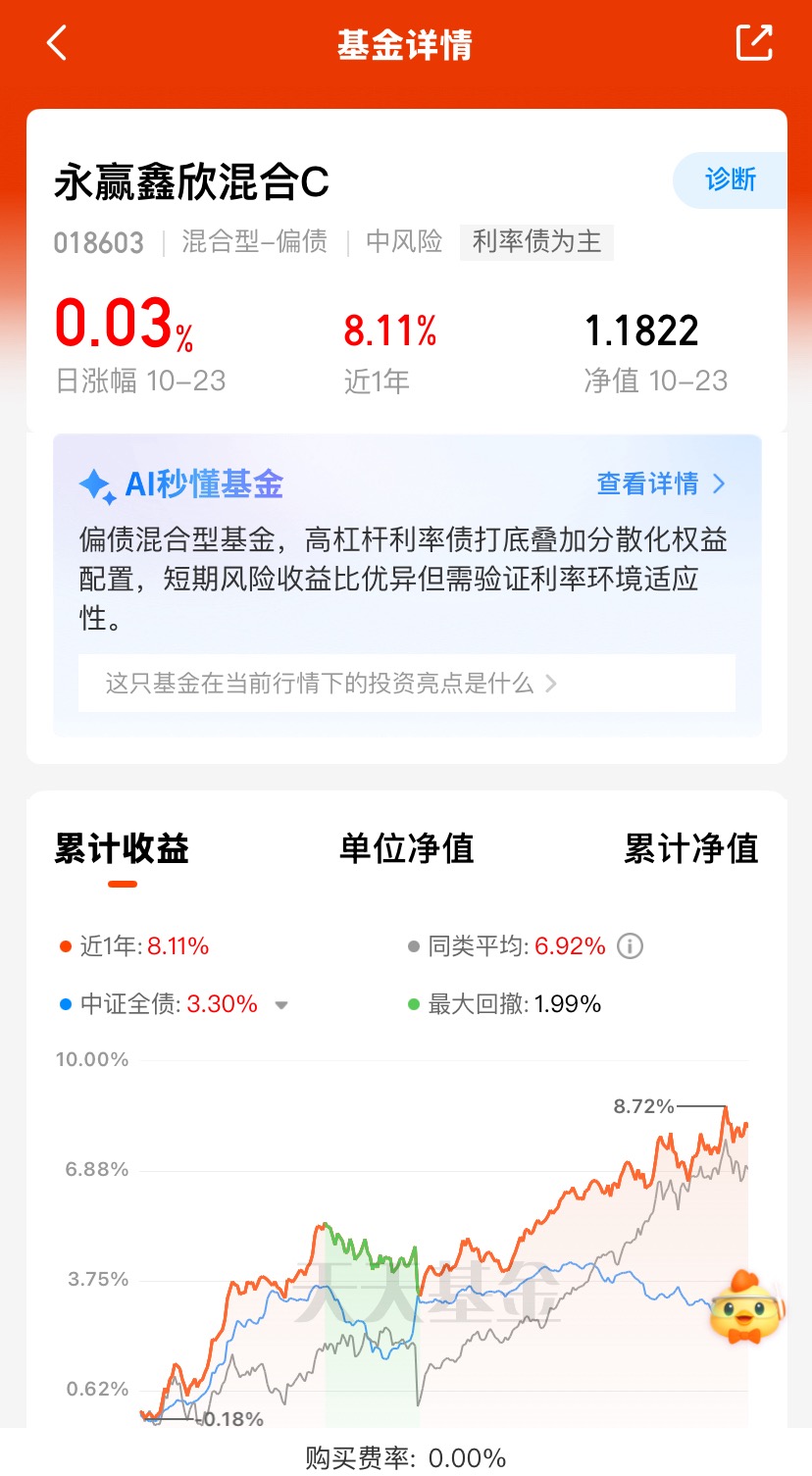 #高盛看多A股:慢牛正形成 还有约30%上涨空间# 混债通过债券打底,控制整体风险,同时配置一定比例的股票或可转债,获取超额收益,适合风险偏好适中的投资者。$永赢鑫欣混合C$ 今天收3个蛋,近三个月收162个蛋,近六个月收378个蛋,近1年收811个蛋,长期收蛋能力还是挺不错的,当前股市处于估值低位,风险溢价较高,为混债基金的股票配置提供了机会。若股市延续上涨趋势,混债基金的收益有望进一步提升。