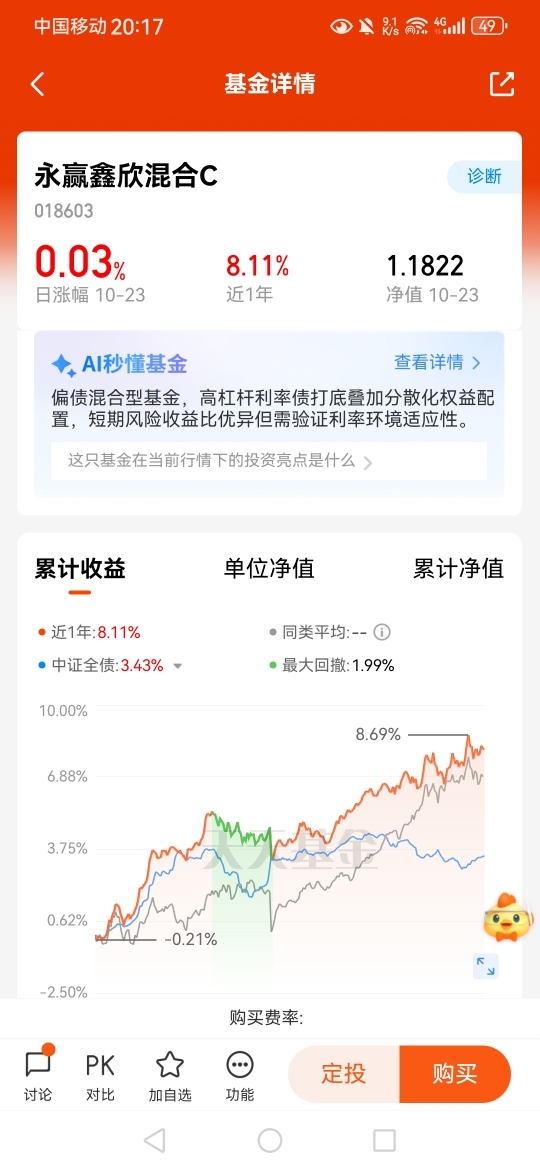 #高盛看多A股:慢牛正形成 还有约30%上涨空间# 目前行情走势看,稳健布局还是固收更有动力,涨多跌少,$永赢鑫欣混合C$ 近一年涨幅+8.11%,实力不错,收大蛋次数多,中长期更有优势,只配置权益风险大,当下均衡配置更适宜。而鑫欣就是以较高仓位债券打底,再配置一定的可转债、股票来增强收益,进退皆宜,也比较适合震荡市场。
