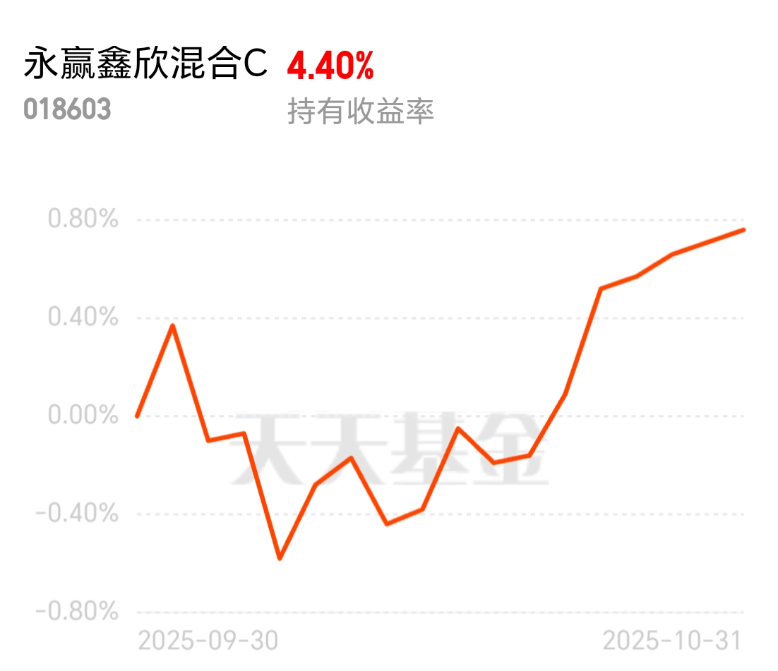 $永赢鑫欣混合C$固收+好就好在能够配置一些市场热点股票,获取超额收益,这几天已